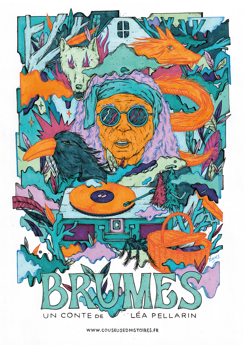 Brume n’aime pas les vacances d’été. Elle passe deux mois chez sa grand-mère, et elle s’ennuie. Sa grand-mère, elle l’appelle Mémère et parfois même … sorcière ! Elle habite dans une petite maison, à l’orée de la sombre forêt, où elle n’a pas le droit d’entrer. Chez la grand-mère de Brume, il n’y a pas de télévision, pas de console, pas d’ordinateur. Il y a des histoires, des chants, elle apprend le nom des plantes, des arbres, des oiseaux.. Mais Brume se demande bien à quoi tout cela sert. Les histoires, c’est pour les bébés, c’est n’importe quoi. Mais quand sa grand-mère disparaît, elle décide alors de s’enfoncer seule, dans la forêt pour la retrouver. Et elle va entrer dans le monde des contes, dans les mondes brumeux.